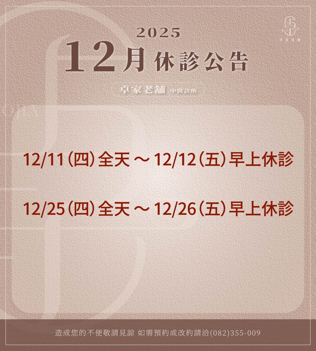 【十二月休診公告】 ⚑卓家老舖中醫診所