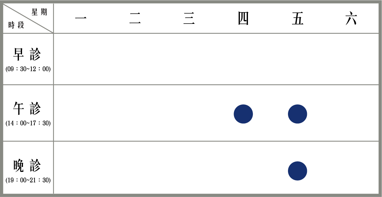 內科、皮膚科、肝膽腸胃科、五官科、婦科、兒科、針傷科